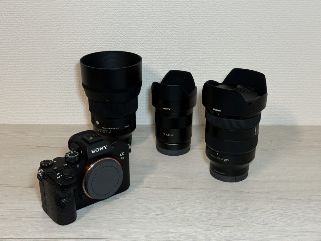 私がバイクの写真を撮るために使っている撮影機材はこの4つ! SONY α7iii SIGMA 85mm F1.4 DGDN Art SONY 55mm F1.8 ZA SONY 24-105mm F4 G カメラはSONY α7iii バイク... -